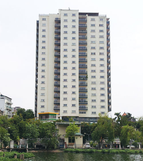 Tòa nhà Skyline Tower ở số 4 Đặng Dung (Q.Ba Đình, Hà Nội) xây thêm 8 tầng so với giấy phép (13 tầng) - Ảnh: Lê Quân