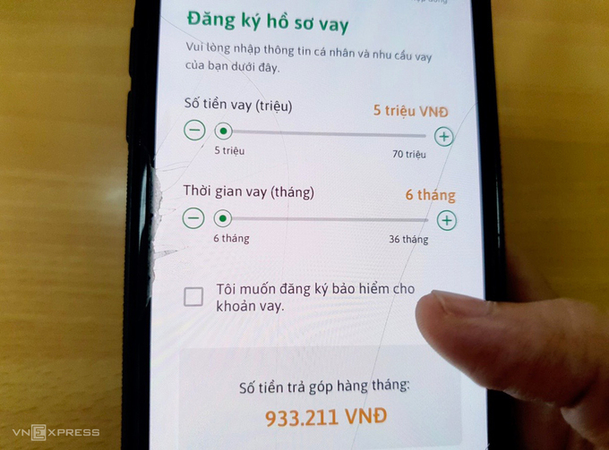 Giao diện ứng dụng cho vay tiền online. Ảnh: Quỳnh Trang.