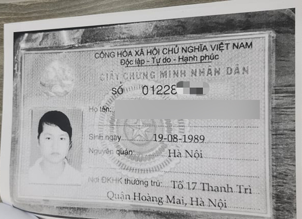 Chứng minh nhân dân giả mạo chỉ có duy nhất số chứng minh và tên là trùng khớp với thông tin anh Minh. Ảnh: NVCC.