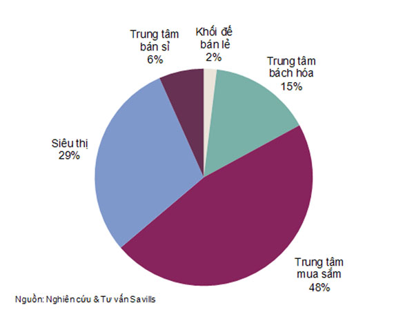Trong đó, khu vực nội thành chiếm khoảng 57% tổng diện tích bán lẻ tương lai, tiếp theo là khu vực ngoại thành và khu vực trung tâm. Các quận 1, 2 và 7 có nguồn cung tương lai cao nhất trong tất cả các quận; chiếm hơn 60% tổng nguồn cung tương lai của thành phố.