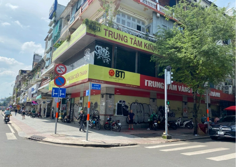 Nằm góc mặt tiền hai tuyến đường Lê Lợi và Nam Kỳ Khởi Nghĩa (quận 1) nhưng mặt bằng này đang để trống suốt nhiều tháng nay. Theo một môi giới cho thuê, mặt bằng có diện tích 225m2 gồm 1 trệt, 1 lầu trước đây được một công ty vàng bạc thuê. Giá thuê hiện khoảng 290 triệu đồng/tháng nhưng chưa tìm được khách mới.