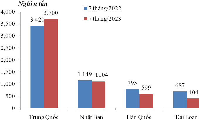 Lượng nhập khẩu sắt thép các loại của Việt Nam từ các thị trường trong 7 tháng đầu năm 2023