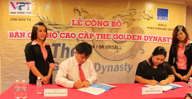 Nhân dịp mở bán, Chủ đầu tư và Công ty TNHH Địa Ốc Hoàng Anh Sài Gòn đã chính thức ký hợp đồng phân phối độc quyền căn hộ thuộc dự án này. Được biết, khách hàng sẽ nhận nhà ngay khi thanh toán 50% giá trị căn hộ, 45% còn lại được trả góp trong 1 năm không lãi suất. Hiện The Golden Dynasty đã hoàn thiện và đang được bàn giao cho khách hàng.