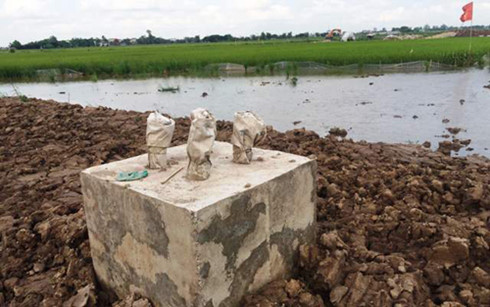 Phần móng vị trí số 01 và 02 đường dây 220 kV Trực Ninh cắt đường dây 220 kV Ninh Bình - Nam Định được thi công khi được sự cho phép của Ban quản lý dự án. (Ảnh: Internet)