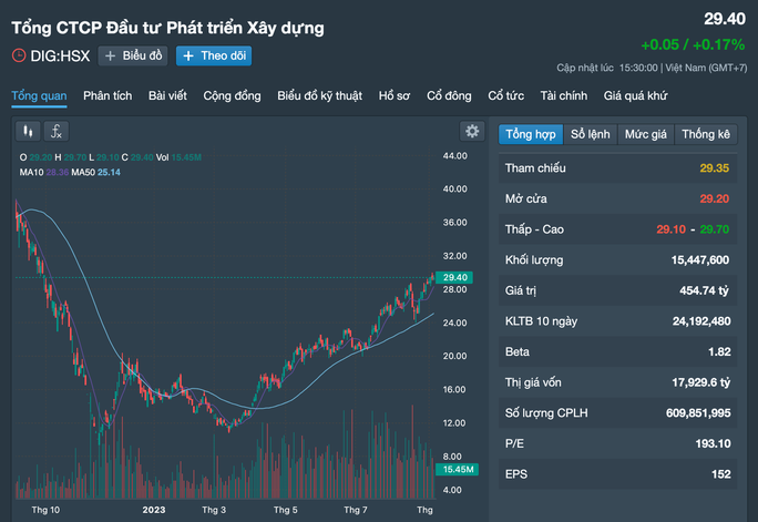 Về tình hình kinh doanh của DIG, trong quý 2/2023, doanh nghiệp này ghi nhận doanh thu 162 tỷ đồng và lợi nhuận sau thuế hơn 9 tỷ đồng, giảm 72% và 89% so với cùng kỳ.