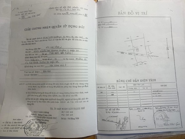 Ông Bình cho hay, qua tìm hiểu, những người thi công ở phần đất của gia đình ông thuộc Công ty TNHH Bất động sản Thảo Minh có địa chỉ ở số 196 đường Lý Chính Thắng, phường 9, quận 3, TPHCM. Đáng nói, công ty này cũng cung cấp Giấy chứng nhận quyền sử dụng đất đối với thửa đất số 12, tờ bản đồ 104 đường Trương Đình Hội, phường 16, quận 8, TPHCM. Vị trí này trùng với thửa đất mà ông Bình đang là chủ sở hữu bấy lâu nay.