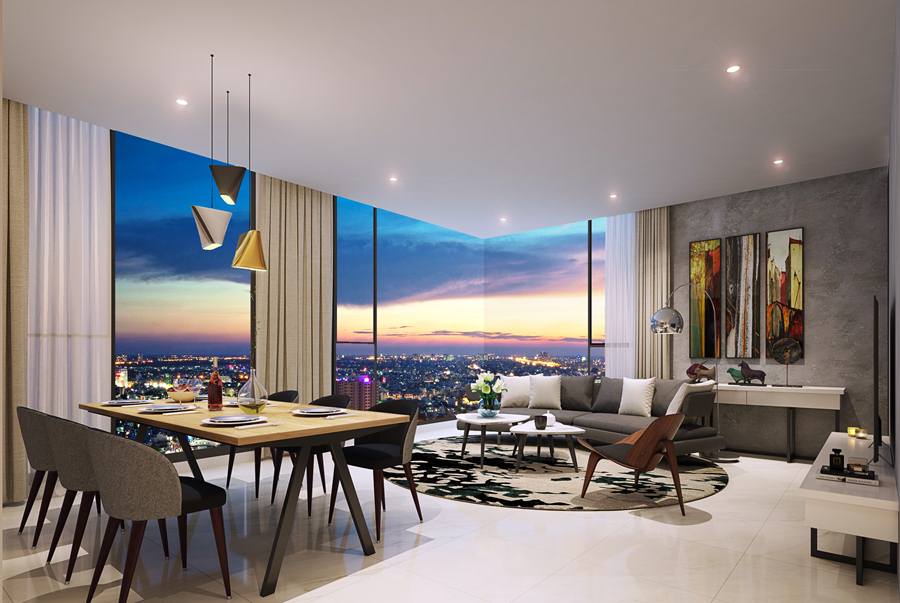 Thiết kế tường kính xuyên suốt và view panorama rộng thoáng tại Kingdom 101