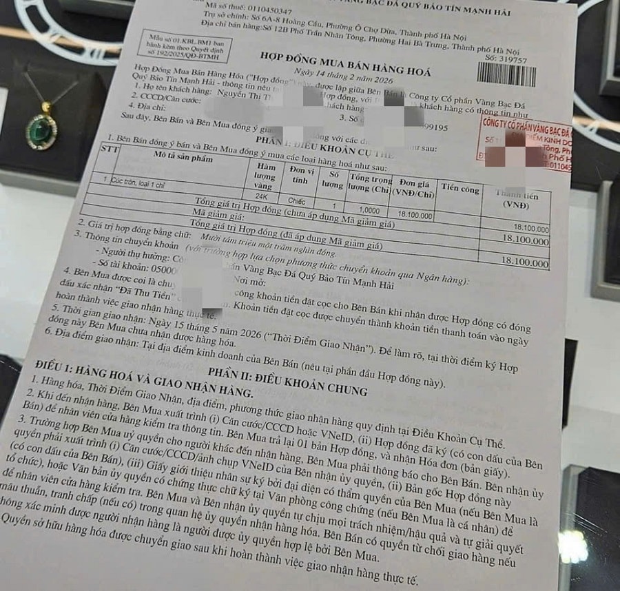 Thời gian gần đây, khi giá vàng liên tục tăng mạnh, thị trường xuất hiện các giao dịch “trả tiền trước - nhận vàng sau”. Người mua thanh toán toàn bộ tiền, nhận giấy hẹn hoặc hợp đồng xác nhận đã thu tiền, còn việc giao vàng được thực hiện sau đó theo thỏa thuận, thay vì nhận ngay tại thời điểm giao dịch.