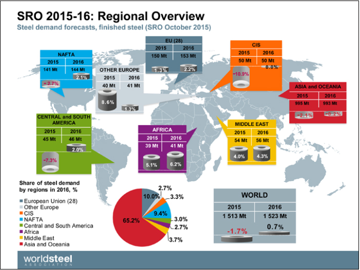 Dự báo nhu cầu thép trên thế giới trong năm nay. Nguồn: Worldsteel