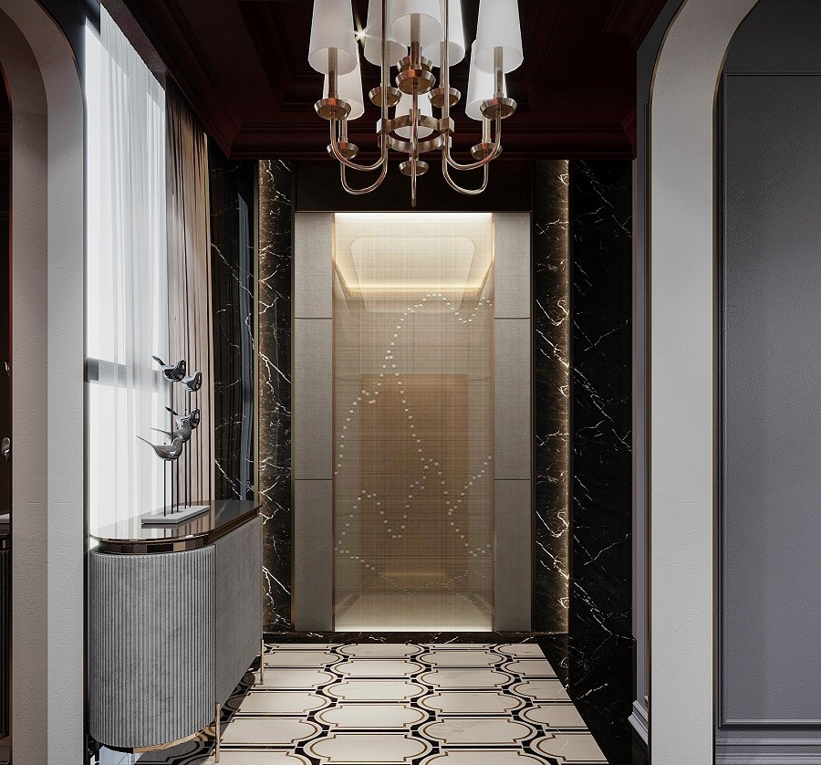Hình phối cảnh thang máy riêng đến tận cửa căn hộ