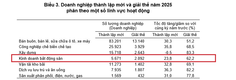 Bên cạnh đó còn có 2.092 doanh nghiệp trong lĩnh vực này giải thể, tăng 62,2% so với cùng kỳ năm trước.