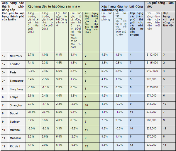 Ở vị trí thứ 3 là Paris và Singapore, trong khi Moscow, Mumbai và Rio de Janeiro xếp vị trí thấp nhất trong số 12 thành phố được khảo sát.
