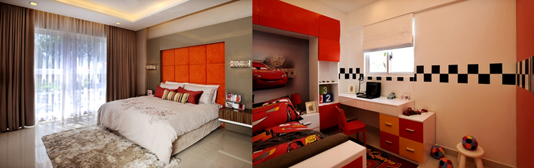 Trong khi đó, ở hai phòng ngủ còn lại là các gam màu mạnh, ấn tượng, trẻ trung.