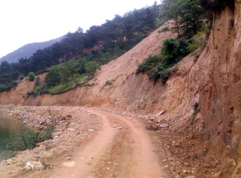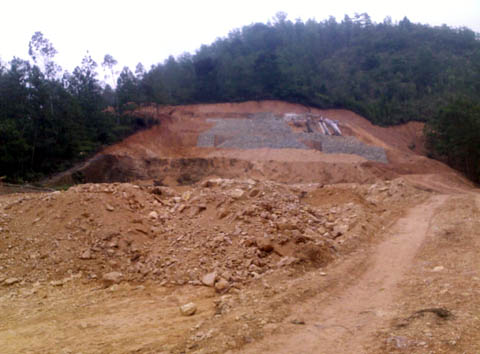 Và cũng giống với nhiều thửa đất sau khi được chuyển nhượng, ngay lâp tức chủ nhân của nó tiến hành thuê máy xúc, nhân công bạt núi, xây kè bằng đá cao cả chục mét để dựng nhà. Đất bạt núi lại được dùng san ủi lấp phần hồ trước mặt thửa đất, khiến lòng hồ bị thu hẹp đáng kể.