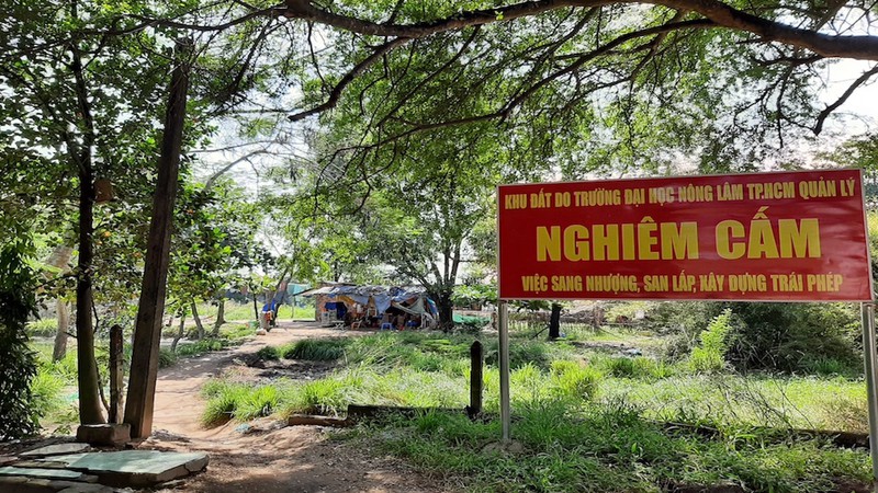 Theo ghi nhận thực tế của phóng viên VOV những ngày cuối tháng 11, tại khu vực cuối đường số 1 thuộc Trường Đại học Nông Lâm TPHCM (phường Linh Trung, quận Thủ Đức), ngoài các phân khu chức năng của các khoa thuộc trường đại học thì còn có nhiều nhà dân và dãy phòng trọ lợp mái tôn.