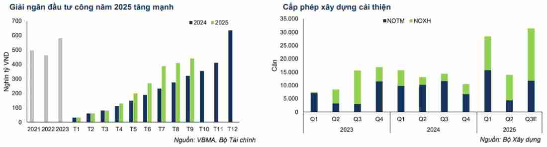 Trong khi hoạt động xây dựng đã bắt đầu trong năm 2025 nhờ sự ấm lên của thị trường bất động sản. Tại thị trường bất động sản sơ cấp, nhiều dự án đã được tháo gỡ pháp lý và bắt đầu khởi công, qua đó thúc đẩy nhu cầu và giúp ngành xây dựng duy trì lượng khối lượng công việc lớn trong một vài năm tới. Ngoài ra, ngành bất động sản mới chỉ đang trong giai đoạn đầu phục hồi, do đó nguồn cung dự án dự kiến sẽ tiếp tục gia tăng và giúp duy trì triển vọng tích cực cho mảng xây dựng dân dụng.