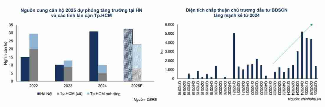 “Hoạt động xây dựng khởi sắc là một chỉ báo sớm, đồng thời cũng đóng góp trực tiếp vào việc gia tăng nguồn cung bất động sản. Nguồn cung bất động sản ở cả lĩnh vực dân dụng và lĩnh vực công nghiệp đều đang được kỳ vọng tăng trưởng mạnh nhờ: tăng trưởng tích cực từ phía nhu cầu và các chính sách tháo gỡ pháp lý và cắt giảm thủ tục hành chính”, FPTS đánh giá.
