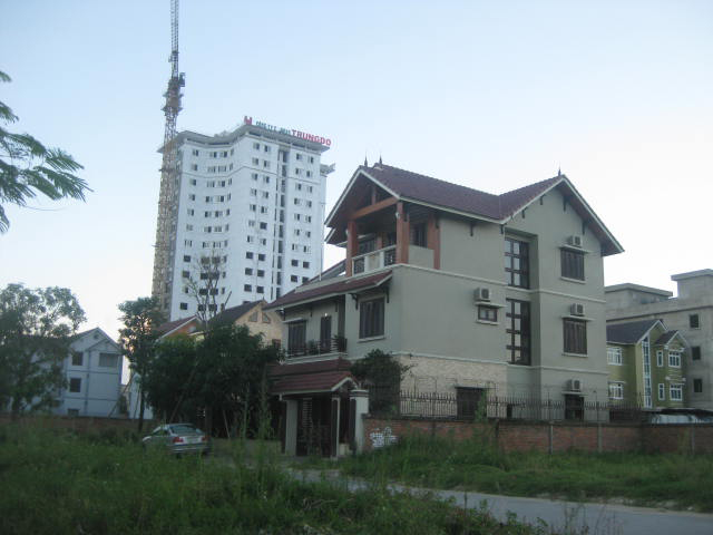 Chưa được giao đất, nhưng chủ đầu tư đã "kịp" xây cao ốc và biệt thự bán cho khách hàng. Ảnh Quang Trung.