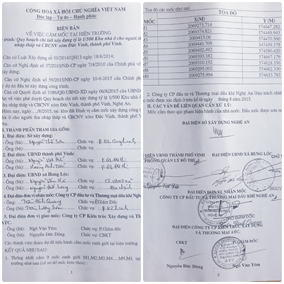 Các biên bản cắm mốc tại hiện trường của dự án