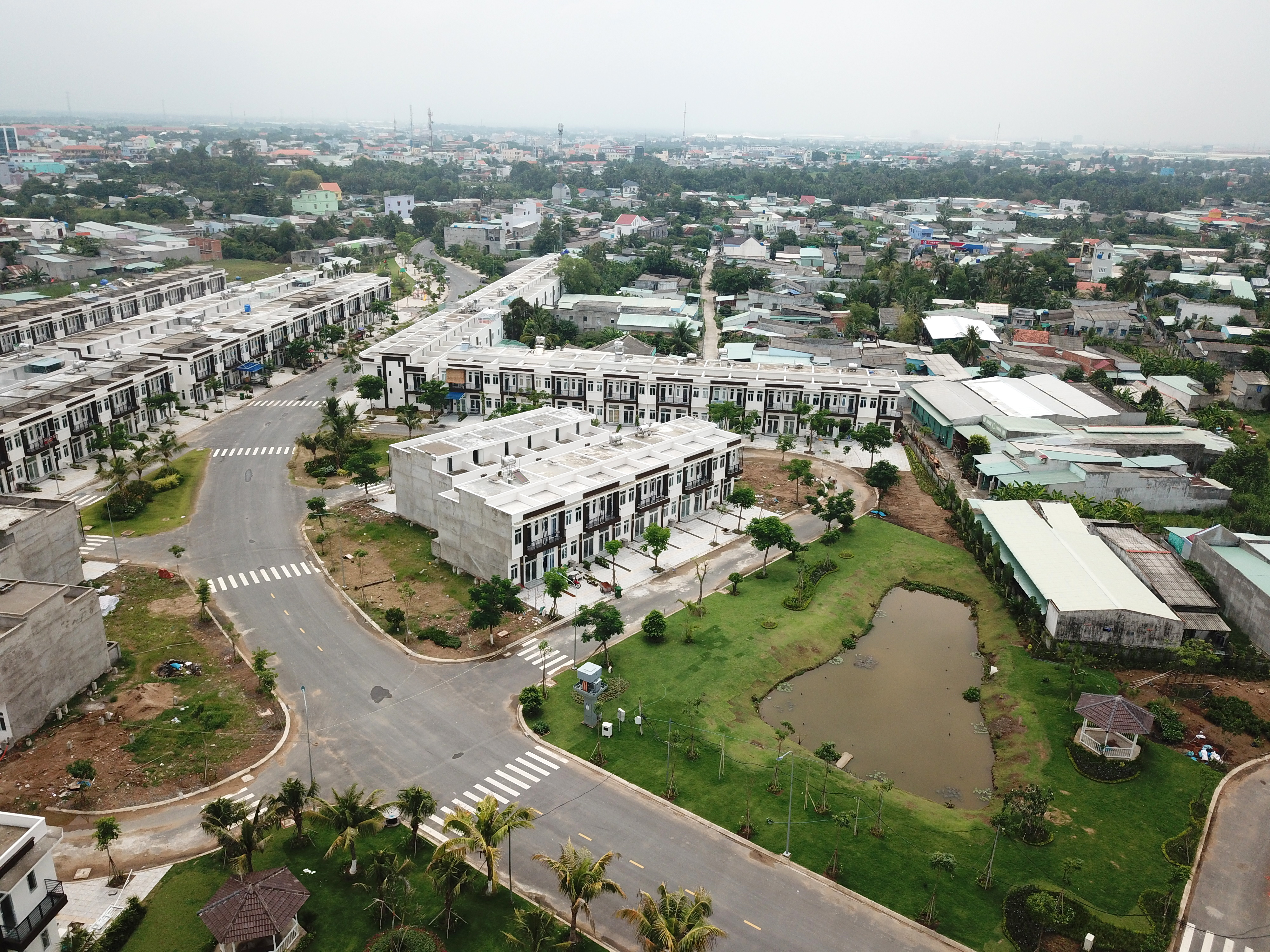 Tại dự án Waterpoint ở Long An, một căn nhà phố vườn diện tích 90m2, xây một trệt một lầu với khoảng 105m2 xây dựng, mặt đường nội khu 12m có giá từ 2,53 tỉ đồng cả thuế VAT, tính ra khoảng 24 triệu đồng/m2.