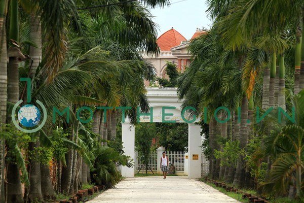 Khu biệt thự được bao quanh bằng tường rào sơn trắng, với cổng vòm rất cao, kiên cố và bề thế. Đường dẫn vào khu biệt thự dài khoảng 200 mét, xe ô tô tránh nhau thoải mái, được quét dọn sạch sẽ và trông rất trang trọng với hai hàng cau kiểng thẳng tắp.