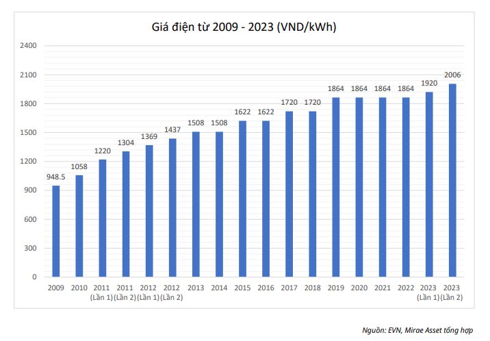 Mirae Asset cho rằng, những tác động của việc tăng giá bán lẻ điện bình quân đến ngành điện là chưa thật sự rõ nét. Tuy nhiên với các doanh nghiệp cần sử dụng nhiều điện năng như xi măng, thép… việc tăng giá này có thể gây ảnh hưởng đáng kể đến lợi nhuận.