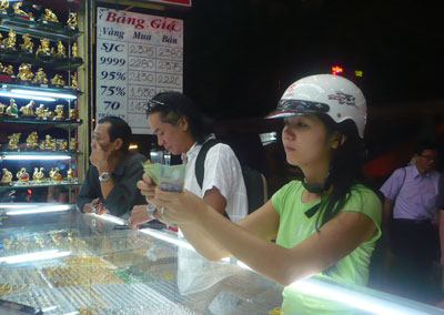 Theo một nhân viên tại tiệm vàng Hà Tâm (đường Nguyễn An Ninh,