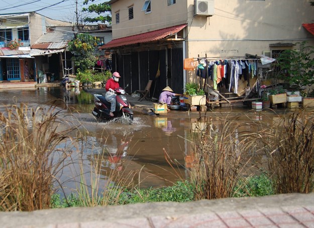 Mặt đường Phạm Văn Đồng (qua quận Bình Thạnh) cao hơn hẻm nên khi trời mưa to hoặc triều cường dâng thì cả con hẻm bị ngập nước.