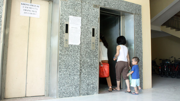Có mặt trong danh sách “đen” nói trên, chung cư tái định cư 4F, Khu đô thị Trung Yên, phường Yên Hòa, quận Cầu Giấy thuộc quản lý của Công ty Quản lý và phát triển nhà Hà Nội. Ông Nguyễn Quang Tập, đại diện Ban quản trị chung cư này (Tổ trưởng tổ dân phố 70, phường Yên Hòa, Cầu Giấy, Hà Nội) cho biết, thang máy hỏng thường xuyên xảy ra nhưng chưa lần nào đơn vị chịu trách nhiệm đứng ra sửa chữa. Thang máy của tòa nhà đã hỏng tới 8 lần và vì không đợi nổi đơn vị quản lý, toàn bộ chi phí sửa chữa do người dân chi trả.