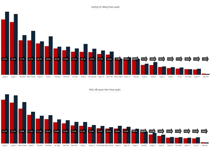 Báo cáo của Batdongsan.com.vn về lượt quan tâm, lượng tin đăng theo quận tháng 10/2023