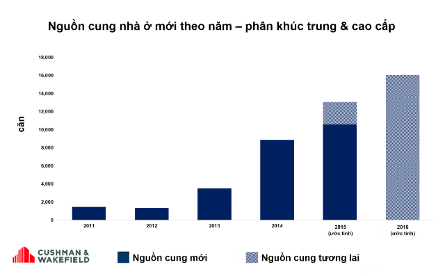 Phân khúc căn hộ cao cấp và trung bình sẽ có một nguồn cung khổng lồ ra mắt thị trường trong ngắn hạn. Trong trường hợp nhu cầu cũng tăng thì sẽ càng có nhiều nguồn cung hơn nữa và khi ấy, giá có thể giảm. Tuy nhiên, trong bối cảnh các dự án đang phải cạnh tranh khá mạnh như hiện nay thì các chủ đầu tư buộc phải tìm mọi cách để bán hàng tốt, không loại trừ khả năng sẽ có sự cạnh tranh về giá, và lúc ấy những người mua nhà là những người được hưởng lợi nhiều nhất.