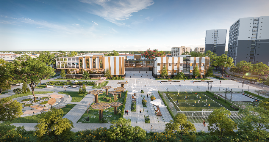Đặc biệt, các căn nhà phố thương mại công năng kép nằm ngay cạnh cụm trường học liên cấp chuẩn quốc tế mang lại tiềm năng kinh doanh ổn định nhờ nguồn khách chất lượng cao là cộng đồng phụ huynh – học sinh và cư dân trẻ. Đây là lựa chọn lý tưởng để phát triển các mô hình kinh doanh gắn liền với đời sống gia đình hiện đại: từ nhà sách, lớp học kỹ năng, học cụ thông minh, thời trang thiếu nhi, thực phẩm dinh dưỡng đến café gia đình…
