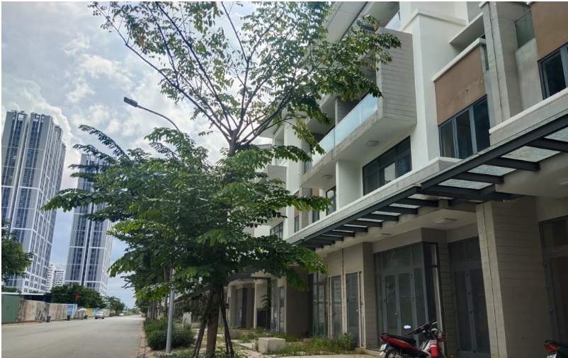 Nằm mặt tiền tuyến đường song hành cao tốc TP.HCM – Long Thành, dãy shophouse có giá trị hơn 20 tỉ đồng mỗi căn thuộc dự án Lakeview City (An Phú, Quận 2) cũng để trống từ khi hoàn thành. Được biết, mức giá cho thuê một căn shophouse 4 tầng với diện tích 100m2 ở đây là khoảng 26-30 triệu đồng/tháng. Tuy nhiên, số lượng có người thuê không nhiều.