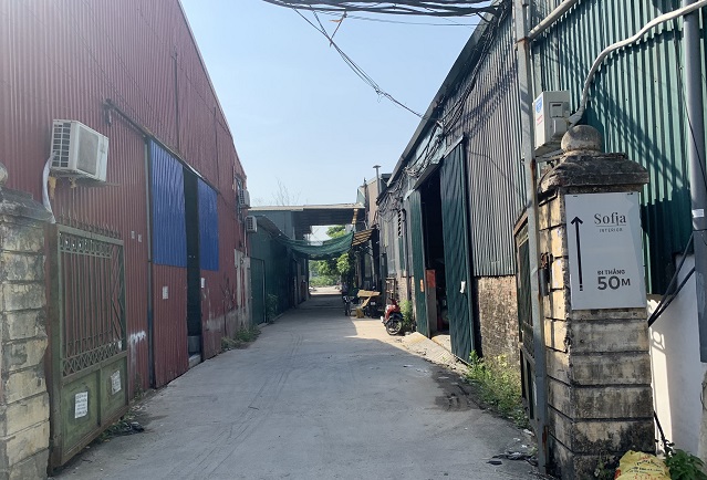 Vào những ngày nắng nóng cao điểm tháng 6/2021, phóng viên có mặt tại khu vực ngõ 24 đường Ngọc Trục, phường Đại Mỗ (quận Nam Từ Liêm) ghi nhận hàng loạt nhà xưởng, kho bãi được dựng tạm bợ, quây tôn tiếp tục hoạt động, sản xuất kinh doanh rầm rộ. Chốc chốc lại có từng lượt xe tải vào bốc/thả hàng cuốn theo làn khói bụi mờ mịt cả đoạn đường.