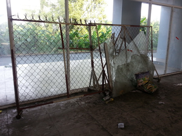 Tiêu biểu nhất là hình ảnh khu trung tâm thương mại nằm ngay tầng trệt của chung cư này. Đây là khu vực khá rộng lớn dùng để cung cấp các dịch vụ cho cư dân. Tuy nhiên, theo lý giải của Ban quản lý, do phần này của chủ đầu tư nên họ chẳng dám đụng vào. Kết quả là khu vực này đã bỏ hoang nhiều năm nay khiến nhiều người không khỏi xót xa. “Họ lý giải là thế nên đến thời điểm hiện tại chúng tôi chẳng biết ai chịu trách nhiệm khu vực này để mà đi thưa nữa”, một cư dân bức xúc.