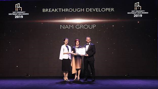Tập đoàn Nam Group nhận giải thưởng "Nhà phát triển bất động sản đột phá Đông Nam Á 2019" tại lễ trao giải Dot Property Southeast Asia Awards 2019.