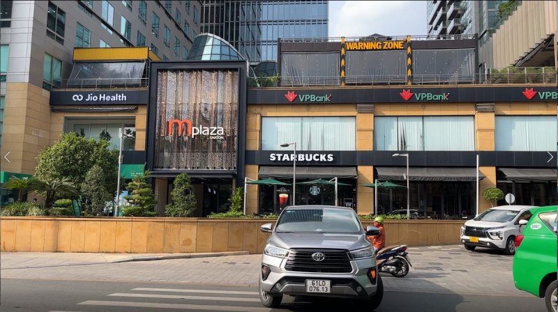 Nhà hàng MK Restaurant đến từ Thái Lan đã từng là khách thuê mặt bằng này. Nay doanh nghiệp đã trả lại mặt bằng, chỉ giữ cơ sở tại các TTTM lớn như Vincom Center Lê Thánh Tôn hay Vincom Mega Mall Thảo Điền. Bị bỏ trống trong thời gian dài, mặt bằng đang được người dân địa phương tận dụng để bán hàng rong, nghỉ ngơi.