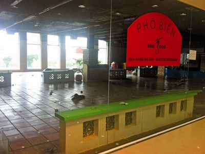 Tại khu thương mại năm tầng này hiện thang máy cuốn không còn hoạt động, hàng loạt gian hàng bỏ trống và đang mời gọi đối tác vào đầu tư. Giá thuê cũng được trung tâm này khuyến mãi còn 7 USD/m2 cùng nhiều chương trình như: Miễn phí bãi đỗ ô tô, xe máy cho nhân viên và khách hàng; cung cấp máy phát điện 24/24 giờ kèm điều hòa trung tâm nhưng xem ra cũng không thể thu hút được khách hàng vào.