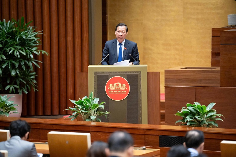 Chủ nhiệm Uỷ ban Kinh tế và Tài chính Phan Văn Mãi trình bày Báo cáo Thẩm tra. Ảnh: quochoi.vn