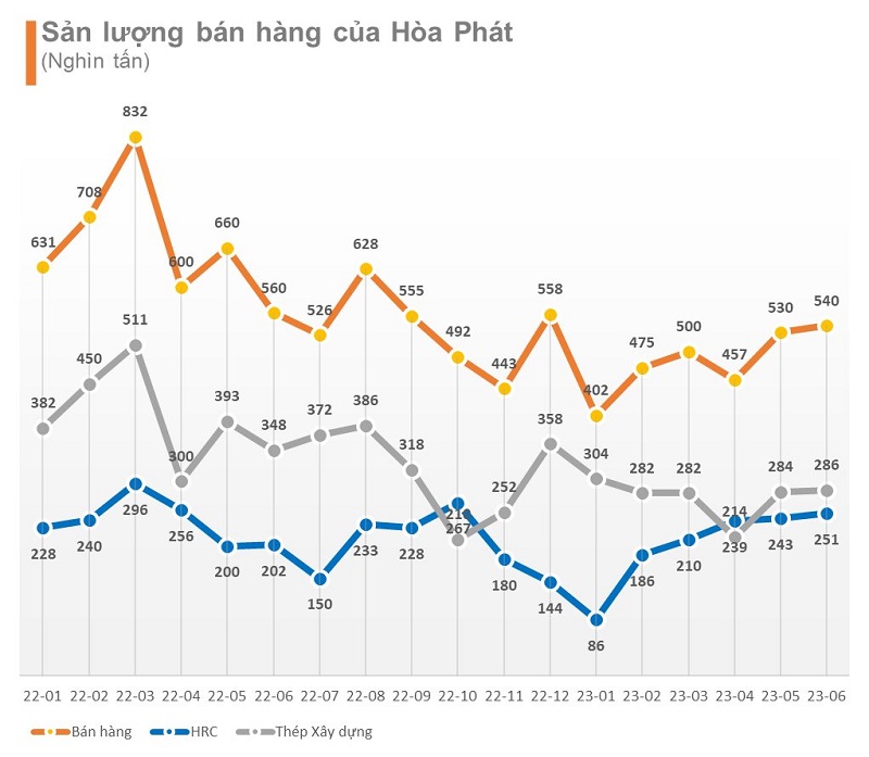 Sản lượng tiêu thụ tháng 6 của Hòa Phát cao nhất kể từ đầu năm 2023
