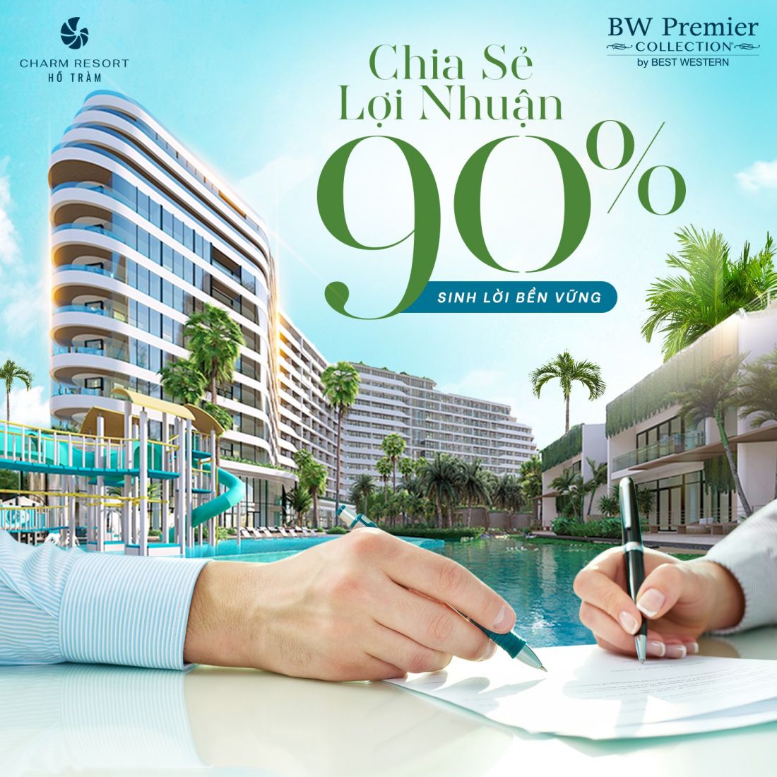Chưa dừng lại ở đó, Charm Group cam kết chia sẻ lợi nhuận lên tới 90% -10% (trong đó 90% dành cho khách hàng – 10% dành cho CĐT) bao gồm dịch vụ lưu trú, dịch vụ F&B và dịch vụ wellness center. Đây gần như là mức chia sẻ lợi nhuận cao nhất và đa dạng nhất trên thị trường. Thông qua năng lực quản lý, vận hành đầy kinh nghiệm và hệ thống khách hàng trải dài trên toàn cầu của Best Western, dự án Charm Resort Hồ Tràm sẽ có lộ trình phát triển vững chắc và dòng khách hàng tăng trưởng đều hàng năm.
