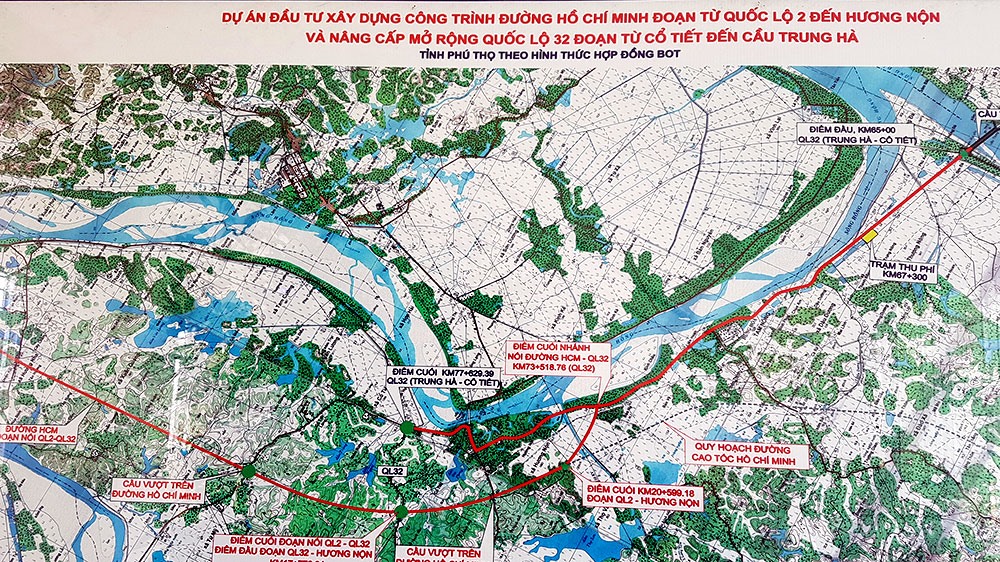 | Dự án ĐTXD công trình đường Hồ Chí Minh đoạn từ QL2 đến Hương Nộn và nâng cấp, mở rộng QL32 đoạn từ Cổ Tiết đến cầu Trung Hà có tổng chiều dài 35km với tổng mức đầu tư là 1.109 tỉ đồng. Trong đó đoạn gia cố QL32 chỉ 12km. Dự kiến, thời gian hoạt động của Trạm BOT Tam Nông là 20 năm. |