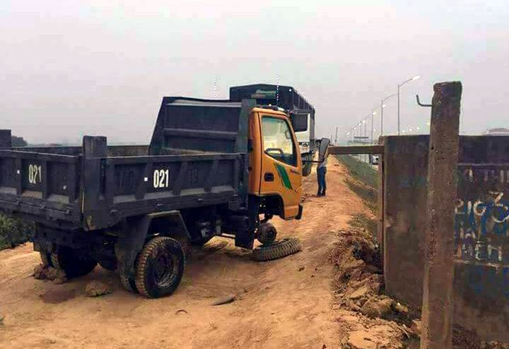 Phản ánh tới PV, nhiều tài xế còn khẳng định, hòng ngăn chặn tình trạng này, khá nhiều chiêu trò được dựng lên nhưng lần lượt đều bị cánh lái xe “bóc trần”. Cụ thể, có lúc là một chiếc xe tải không đeo biển số nằm chết máy chắn ngang thân đê cả mấy ngày trời không cho bất cứ phương tiện nào qua lại.