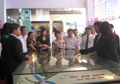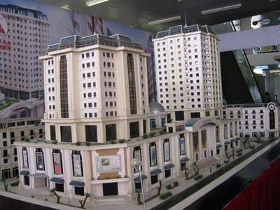 Mô hình trưng bày to nhất. Đó là mô hình Vĩnh Trung Plaza của Cty Cổ phần Đức Mạnh. Mô hình chiếm một không gian lớn và tạo nên nét độc đáo cho gian hàng của Cty Đức Mạnh tại Triễn lãm lần này.