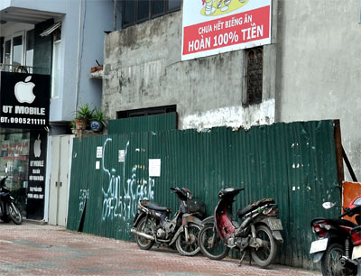 Mảnh đất “vàng” này rộng khoảng 7m2, nhưng chiều sâu chỉ chưa đầy 1m, đang được chủ cũ rào kín... chờ cơ hội.