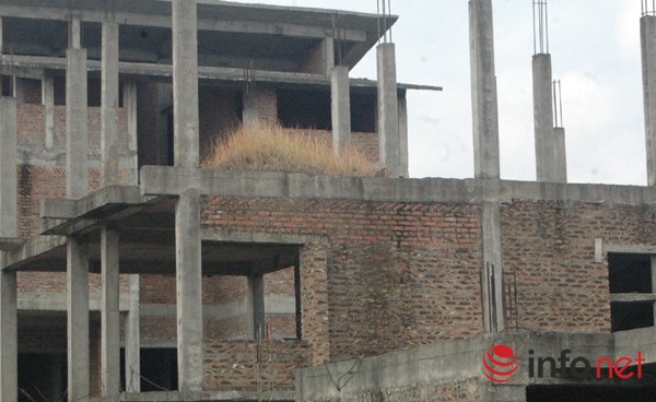 Cỏ mọc trên trần của những ngôi biệt thự đang xây dựng giang dở.