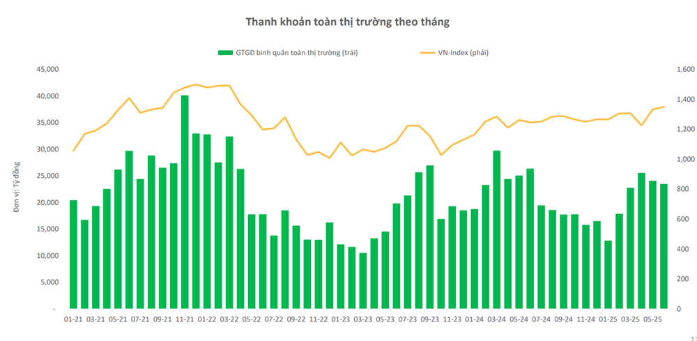 Thị trường chứng khoán từ đáy đầu tháng 4 đã phục hồi rất tốt, VN-Index tăng gần 30% để chinh phục lại vùng giá cao nhất 3 năm. Đồng thời, thanh khoản thị trường chứng khoán cải thiện mạnh, tần suất phiên giao dịch trên 20.000 tỷ đồng ngày càng nhiều. Đặc biệt, trong các phiên giao dịch gần đây, thanh khoản lên đến 28.000 – 33.000 tỷ đồng.