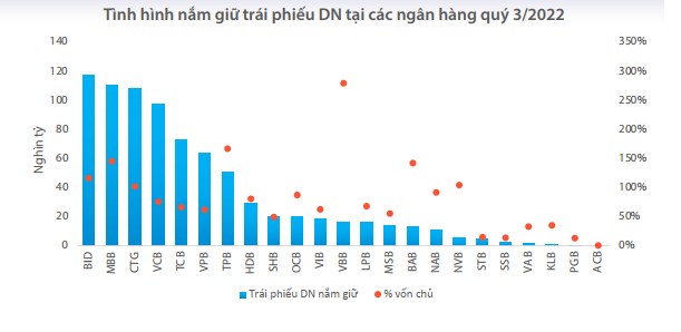 Nhóm ngân hàng có tỷ lệ nắm giữ trái phiếu doanh nghiệp/vốn chủ cao cũng có thể gặp rủi ro trong việc thu hồi nợ khi kênh huy động trái phiếu của các doanh nghiệp bị siết lại, các doanh nghiệp gặp khó trong việc tìm dòng vốn mới để đảo nợ, theo WiGroup.