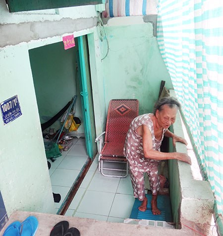 Đã hơn 70 tuổi, lại bị bệnh tim nên mỗi khi leo ra khỏi căn nhà nằm thấp hơn mặt đường gần 2 m (1009/1F Lò Gốm, phường 8, quận 6) là bà Lý Thị Ba lại thở dốc, muốn ngất xỉu. “Không có tiền nâng nhà nên khổ quá chú ơi. Khi có chuyện cần lắm tôi mới ra khỏi nhà, chứ leo trèo kiểu này chắc có ngày đứng tim, tắt thở luôn” - bà Ba mệt nhọc nói.