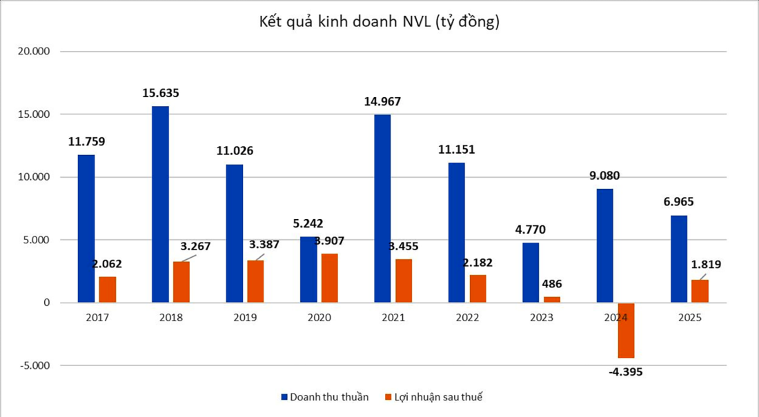 Trong năm cuối cùng của lộ trình tái cấu trúc toàn diện, Novaland vẫn đang giải bài toán thanh khoản và tiếp tục tái cấu trúc nợ. Tại cuối 2025, theo BCTC có kiểm toán, Novaland có tổng tài sản hơn 249,9 nghìn tỷ đồng, song tổng nợ phải trả lên tới hơn 191,9 nghìn tỷ đồng, trong đó hơn 95 nghìn tỷ đồng nợ ngắn hạn, nhiều khoản nợ đến hạn trả liên quan đến trái phiếu và các khoản vay ngân hàng chưa được gia hạn thành công tại thời điểm chốt báo cáo.